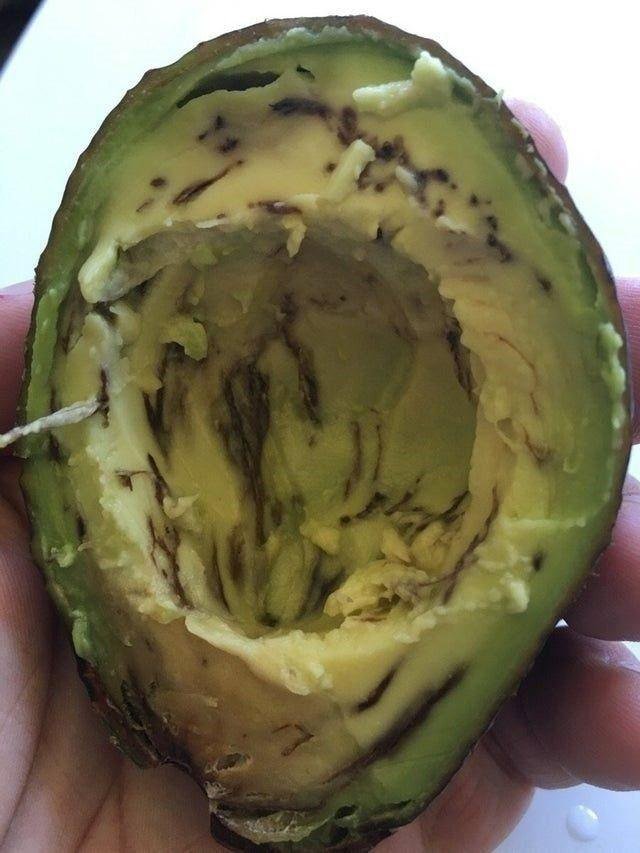 Black or stringy flesh throughout the entire avocado is a sign of rot or freeze damage. If it smells fine but looks awful, it’s probably past its prime. When in doubt, throw it out.