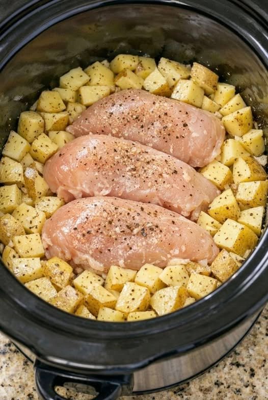 Add Chicken: Place the chicken breasts on top of the potatoes in a single layer.